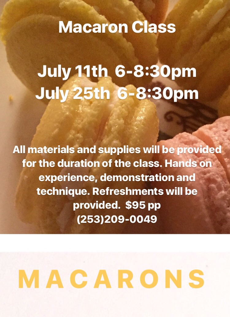 Macaron Class in July Published on June 30, 2017 by chocolatearistocratLeave a comment We have limited space for new Macaron students! Our Afternoon Tea and Scone classes are SOLD OUT. Reserve your space today!
